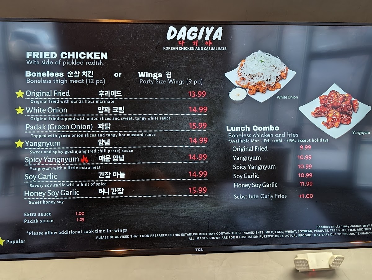 Introducing Dagiya, a delightful culinary gem located at 5612 S Parker Rd, Aurora, Colorado. Renowned for its Korean fried chicken, Dagiya offers a menu that excites the taste buds and leaves patrons craving more. Customers rave about the thigh meat boneless wings, which are hailed as some of the best in Colorado. The kimchee fried rice and pickled radish complement the chicken beautifully, creating a harmony of flavors that elevate the dining experience.